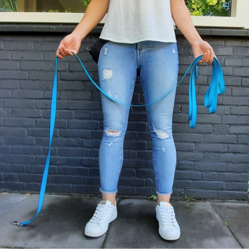 De wandeling is hét moment waarop je hond ongestoord hond kan zijn. Snuffelen, onderzoeken, graven, zwemmen, zo maar wat voorbeelden van echt honds gedrag. Om je hond ruimte te geven ongehinderd (door de riem) te snuffelen, is een lange lijn ideaal. Deze lange lijn (5meter raad ik aan voor wandelingen, 10m voor speuren) is mijn absolute favoriet; het materiaal wordt niet vies/zwaar en kan gemakkelijk met een doekje afgenomen worden. Doordat je hond meer ruimte heeft, is het ook minder nodig om aan de riem te trekken. Je hond kan gemakkelijk van links naar rechts alle heerlijke geurtjes volgen. (Het is  wel belangrijk dat je weet hoe je de lijn het beste hanteert, om te voorkomen dat je zelf in de lijn verstrikt raakt! Je mag me altijd om advies vragen)